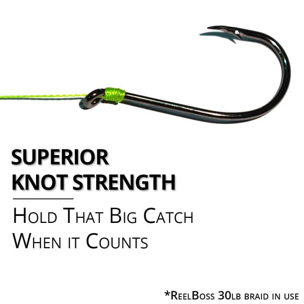 Great product range for Braided Lines & Fluorocarbon Leader across multiple sizes, lengths, and colors to meet my fishing needs at a price I can afford. The Braid has never let me down, and knot strength has proved to have no issues with both swivels and Reelboss Fluorocarbon Leaders.